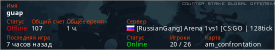 Играет на Counter Strike Global Offensive сервере. Страна: РоссияПервый раз замечен 10:08 06.03.2026
