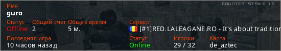 Играет на Counter Strike 1.6 сервере. Страна: РумынияПервый раз замечен 13:43 06.02.2026