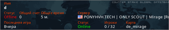 Последний раз был в сети Вчера Игрок с таким ником замечен на 61 сервере