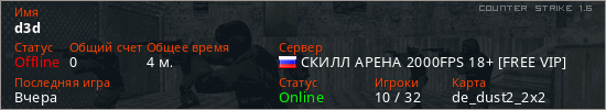 Последний раз был в сети Вчера Игрок с таким ником замечен на 8 серверах