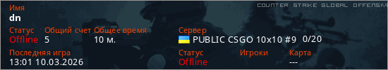 Играет на Counter Strike Global Offensive сервере. Страна: УкраинаПервый раз замечен 12:24 10.03.2026