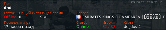 Последний раз был в сети 15 часов назад Игрок с таким ником замечен на 9 серверах