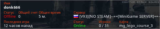 Последний раз был в сети 11 часов назад Игрок с таким ником замечен на 65 серверах
