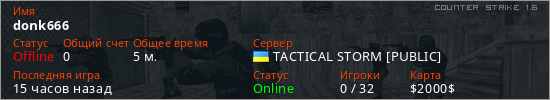 Играет на Counter Strike 1.6 сервере. Страна: УкраинаПервый раз замечен 18:40 16.02.2026