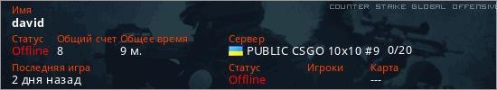 Играет на Counter Strike Global Offensive сервере. Страна: УкраинаПервый раз замечен 15:46 03.04.2026