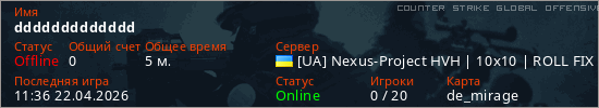 Играет на Counter Strike Global Offensive сервере. Страна: УкраинаПервый раз замечен 11:05 22.04.2026