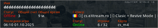 Играет на Counter Strike 1.6 сервере. Страна: РумынияПервый раз замечен 21:25 28.04.2025