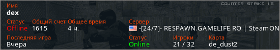 Играет на Counter Strike 1.6 сервере. Страна: СШАПервый раз замечен 14:40 10.02.2025