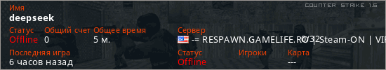 Играет на Counter Strike 1.6 сервере. Страна: СШАПервый раз замечен 23:56 25.12.2025