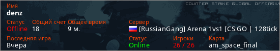 Играет на Counter Strike Global Offensive сервере. Страна: РоссияПервый раз замечен 18:54 28.12.2025