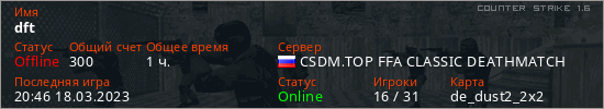 Играет на Counter Strike 1.6 сервере. Страна: РоссияПервый раз замечен 14:34 13.03.2023