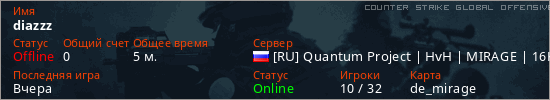 Играет на Counter Strike Global Offensive сервере. Страна: РоссияПервый раз замечен 07:20 03.04.2026