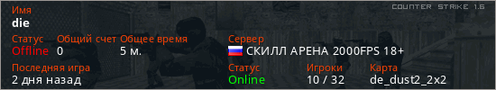 Последний раз был в сети 2 дня назад Игрок с таким ником замечен на 23 серверах