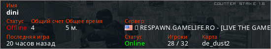 Играет на Counter Strike 1.6 сервере. Страна: СШАПервый раз замечен 01:44 08.04.2026