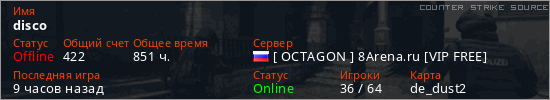 Играет на Counter Strike Source сервере. Страна: РоссияПервый раз замечен 15:16 24.02.2020