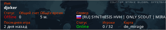Играет на Counter Strike Global Offensive сервере. Страна: РоссияПервый раз замечен 17:27 07.03.2026