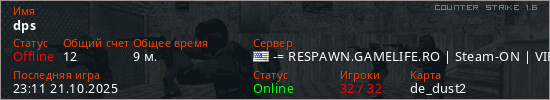 Играет на Counter Strike 1.6 сервере. Страна: СШАПервый раз замечен 00:35 05.02.2025