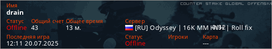 Играет на Counter Strike Global Offensive сервере. Страна: РоссияПервый раз замечен 19:02 03.06.2025