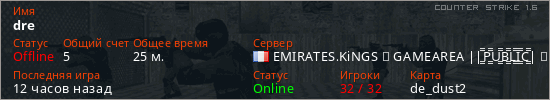 Играет на Counter Strike 1.6 сервере. Страна: ФранцияПервый раз замечен 15:00 29.03.2026
