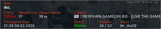 Играет на Counter Strike 1.6 сервере. Страна: СШАПервый раз замечен 22:44 27.01.2026