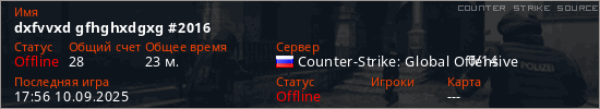 Играет на Counter Strike Source сервере. Страна: РоссияПервый раз замечен 22:45 09.09.2025