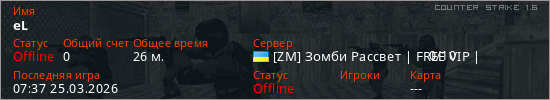 Играет на Counter Strike 1.6 сервере. Страна: УкраинаПервый раз замечен 13:55 23.03.2026