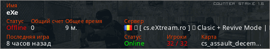 Играет на Counter Strike 1.6 сервере. Страна: РумынияПервый раз замечен 02:47 11.01.2026
