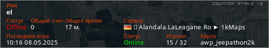 Играет на Counter Strike 1.6 сервере. Страна: ГерманияПервый раз замечен 14:55 26.05.2024