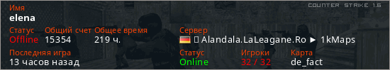 Последний раз был в сети 12 часов назад Игрок с таким ником замечен на 17 серверах