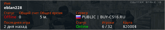 Играет на Counter Strike 1.6 сервере. Страна: РоссияПервый раз замечен 18:55 27.03.2026