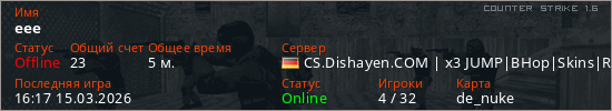 Играет на Counter Strike 1.6 сервере. Страна: ГерманияПервый раз замечен 16:03 15.03.2026