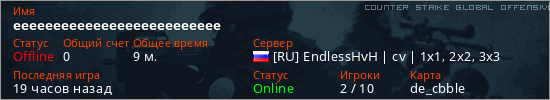 Играет на Counter Strike Global Offensive сервере. Страна: РоссияПервый раз замечен 20:17 04.12.2025