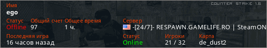 Последний раз был в сети 15 часов назад Игрок с таким ником замечен на 30 серверах