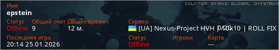 Играет на Counter Strike Global Offensive сервере. Страна: УкраинаПервый раз замечен 22:24 23.01.2026