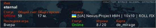 Последний раз был в сети Вчера Игрок с таким ником замечен на 19 серверах