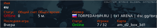 Играет на Counter Strike Global Offensive сервере. Страна: РоссияПервый раз замечен 17:32 30.03.2026