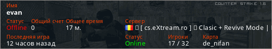 Играет на Counter Strike 1.6 сервере. Страна: РумынияПервый раз замечен 06:21 04.03.2026
