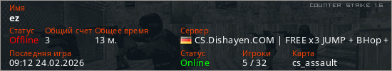 Играет на Counter Strike 1.6 сервере. Страна: ГерманияПервый раз замечен 16:00 21.02.2026