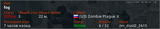 Играет на Counter Strike 1.6 сервере. Страна: РоссияПервый раз замечен 15:36 23.02.2026