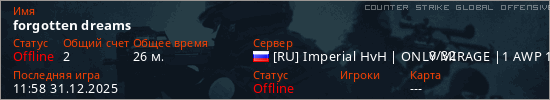 Играет на Counter Strike Global Offensive сервере. Страна: РоссияПервый раз замечен 18:04 18.12.2025