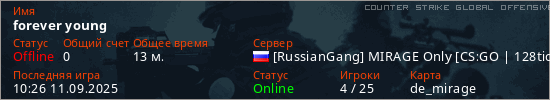 Играет на Counter Strike Global Offensive сервере. Страна: РоссияПервый раз замечен 08:02 26.08.2025