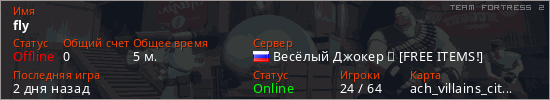 Играет на Team Fortress 2 сервере. Страна: РоссияПервый раз замечен 09:24 28.03.2026