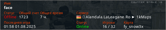 Последний раз был в сети 01:58 01.08.2025 Игрок с таким ником замечен на 28 серверах