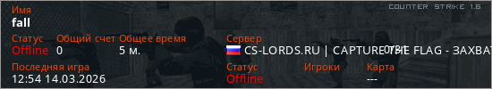 Играет на Counter Strike 1.6 сервере. Страна: РоссияПервый раз замечен 12:46 14.03.2026