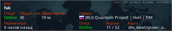 Играет на Counter Strike Global Offensive сервере. Страна: РоссияПервый раз замечен 14:14 12.04.2026