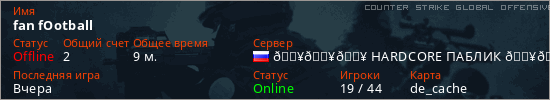 Играет на Counter Strike Global Offensive сервере. Страна: РоссияПервый раз замечен 14:14 07.04.2026