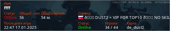 Играет на Counter Strike Global Offensive сервере. Страна: РоссияПервый раз замечен 18:29 30.12.2024