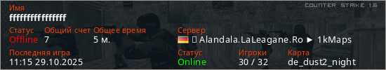 Последний раз был в сети 11:15 29.10.2025 Игрок с таким ником замечен на 7 серверах