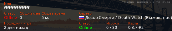 Последний раз был в сети 2 дня назад Игрок с таким ником замечен на 8 серверах