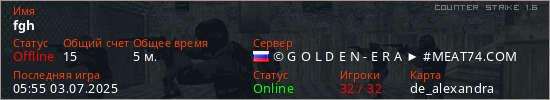 Играет на Counter Strike 1.6 сервере. Страна: РоссияПервый раз замечен 05:53 03.07.2025